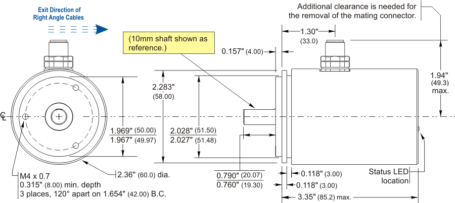 The figure above shows the pilot of a flange mount nose. Listed dimensions are identical for the servo mount option.