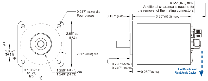 | Shaft loading: | 40 lbs. radial/20 lbs. axial maximum shaft loading. Bearing life rated at 2X109 revolutions minimum at maximum shaft load. |