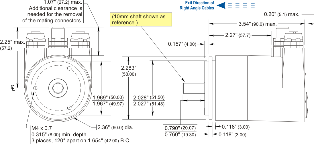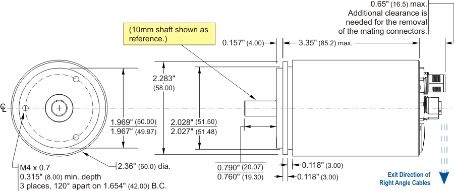 | Package style: | 58mm diameter housing available with flange or servo shaft mounting 63mm diameter housing with blind shaft mounting |